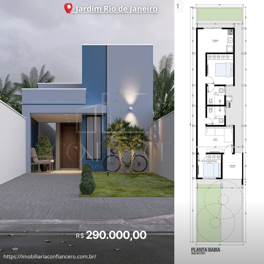 Seja bem-vindo à sua nova moradia no bairro Jardim Rio de Janeiro, em Ariquemes-RO! Esta encantadora casa com 2 dormitórios, sendo 1 suíte, e 2 banheiros, é o lar perfeito para você e sua família. Com uma área construída de 64.72m², este imóvel oferece conforto e praticidade em cada canto.